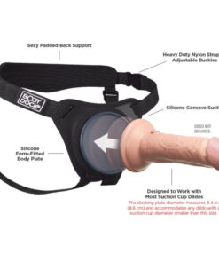 The patented Body Dock Elite takes strap-on play to a whole new level! It features a premium silicone docking plate that conforms to the shape of your body for the ultimate fit. Also included are adjustable side-release buckles and padded back support. Changing your favorite strap-on accessory has never been faster or easier! Its as simple as attaching the suction cup on your favorite dildo or vibrator to the docking plate, while the nylon straps easily adjust to fit most sizes and body types. Best of all, it works with most dildos on the market today, including some you may already own. No rings. No snaps. No hassle!
