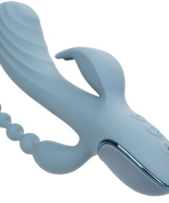 Indulge your wildest fantasies with the wickedly powerful III Triple Ecstasy. Experience pleasure like never before with the powerful triple-action rechargeable massager with pulsating shaft, beaded tail and contoured stimulator. This bold triple penetrator is made to satisfy pleasure. The powerful triple penetration massager uses 3 pulsation speeds on the sensually curved shaft to provoke the G-spot and shuddering penetration. While a tail of beads excites and a sensual rabbit toy flashes to the rhythm of 10 powerful independent vibration functions. Rhythmic vibration and tail provide spectacular stimulation, while the contoured shaft pleases with deep, rumbling pulsations. Control and customize your pleasure game with independently controlled functions. Recharge the massager in 2.5 hours with the included USB charging cable to enjoy 30 minutes of high-speed action or 90 minutes of low-speed stimulation. Enjoy frustration-free control with the easy-to-touch 3-button control panel and security lock feature for on-the-go pleasure. The virtually seamless body and self-sealing charging port let you take this versatile waterproof device out for a dip. Premium silicone is body-safe, fragrance-free, and phthalate-free to keep your most sensitive spots happy and healthy.