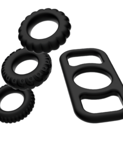 ADDICTED TOYS – ANAL PLUG WITH DOUBLE PENIS RING AND TESTICLES BLACK