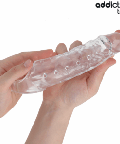 The Addicted Toys Penis Sleeve in size M is designed to cover the penis and provide an increase in both length and girth, offering an enhanced experience during sexual intercourse. This product is Made from high quality transparent material, allowing you to view the usage process without distractions, whilst enhancing sexual performance safely and comfortably.