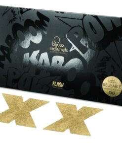 “Flash è una nuova collezione di body art scintillanti di Bijoux Indiscrets disponibile in due tonalità abbaglianti, oro e argento. Ispirato ai fumetti statunitensi, progettato per tutte le superdonne, Flash è il braccio di seduzione definitivo.