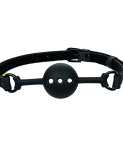 The Boundless breathable ball gag is the perfect erotic accessory for couples looking to experiment with erotic restraint play or fierce fetishists looking to satisfy their deepest desires . Indulge in your naughtiest fantasies while securing the flexible silicone ball gag, designer vegan leather straps, and adjustable buckle closure. The flexible, breathable ball delivers primal passion to your bedroom, while each muffled moan increases pleasure and intensifies arousal for everyone involved. Immerse yourself in adventurous desire and enjoy your most erotic fantasies with this sensationally comfortable breathable ball gag.