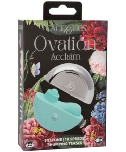 Experience intense pleasure with the Ovation Acclaim, which features ergonomic curves for precise stimulation. Explore 10 pulsating speeds for diverse sensations. Its discreet magnetic case guarantees privacy. Made with body-safe silicone, it’s waterproof and submersible for bath time fun. With a memory chip, it remembers your last settings, and a travel lock feature ensures worry-free transportation. Stay powered with USB recharging, providing 45 minutes of pulsations at high speed or 70 minutes at low speed.