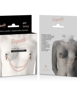 Questi morsetti per capezzoli a catena di Coquette Chic Desire! sono unisex e molto facili da usare. Le clip e la catena sono realizzate in metallo privo di nichel. Non contengono nichel. Puoi usare le pinze per capezzoli per i tuoi segreti cattivi o come integratore stimolante mentre penetri nel tuo amante.
