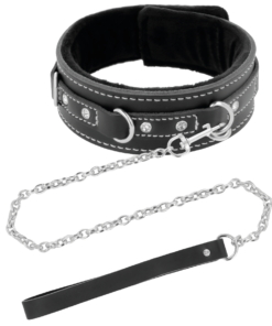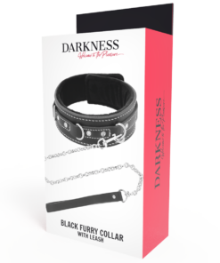 DARKNESS BLACK FURRY COLLAR WITH LEASH