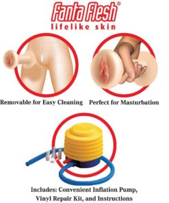 Questa incredibile bambola gonfiabile a grandezza naturale è stata progettata meticolosamente con caratteristiche realistiche per un’esperienza davvero realistica. La sua sexy testa sagomata in 3-D presenta ciglia realistiche e una lussuosa testa di capelli veri che chiede di essere tirata! Guardala prendere vita con le braccia che ruotano di 360 gradi e le unghie delle mani e dei piedi dipinte in modo delizioso. Stringi il suo seno sodo e vivace mentre ti godi la sua pelle, la sua figa e il suo culo ultra realistici Fanta-Flesh ? che si sentono anche meglio della cosa reale! La fica e il culo Fanta-Flesh ? sono rimovibili per una facile pulizia profonda e possono anche essere gustati separatamente per la masturbazione. Una pompa di gonfiaggio, un kit di riparazione in vinile e le istruzioni sono comodamente inclusi.