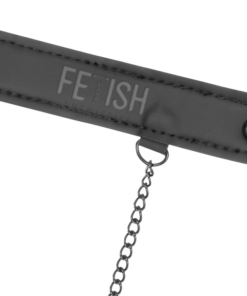 Collare in pelle vegana FETISH SUBMISIVE con morsetto per capezzoli fissato da catena metallica.