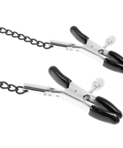 Realizzato in morbida pelle vegana e rifinito con due pinze con capezzoli con catene, questo set di collare con pinzette assicura il tuo soggetto al momento. Il comodo collare si adatta facilmente a quasi tutte le taglie, mentre i morsetti per capezzoli offrono la giusta tensione nel posto giusto. Basta regolare la vite sui capezzoli finché non è aderente e confortevole e iniziare a godere del piacere di un buon pizzico. I suoi rivestimenti in gomma permetteranno che con l’azione del momento non scivolino e rimangano al loro posto.