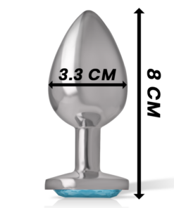 INTENSE – ALUMINUM METAL ANAL PLUG WITH BLUE GLASS SIZE M