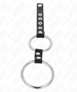 KINK – DOUBLE METAL PENIS RING 3.8 CM TO 5 CM CONNECTED WITH LEATHER