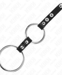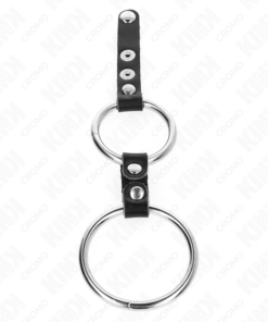 KINK – DOUBLE PENIS RING 3.8 CM TO 5 CM CONNECTED BY LEATHER