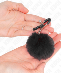 KINK – FAUX FUR BALL NIPPLE CLAMP BLACK 6 CM