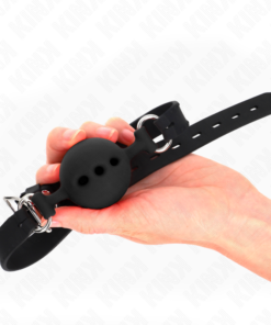KINK – FULL SILICONE GAG 55 x 2 CM WITH 5 CM BALL SIZE L BLACK ADJUSTABLE 35-51 CM