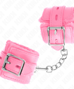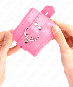 KINK – FUR LINED WRIST RESTRAINTS WITH SQUARE HOLES PINK AND PINK BELT ADJUSTABLE 17-29 CM X 6 CM