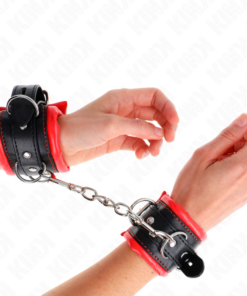 KINK – HEAVY WRIST RESTRAINTS WITH RED FUR LINED ADJUSTABLE 20-30 CM X 6 CM