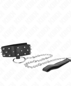 KINK – NECKLACE WITH LEASH 65 CM WITH SILVER STUDS MODEL 5 ADJUSTABLE 36-43 CM X 5 CM