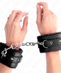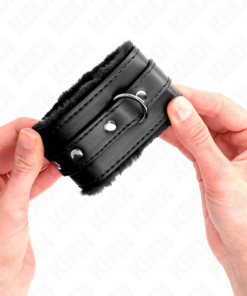 KINK – PREMIUM FUR LINED WRIST RESTRAINTS BLACK WITH BLACK BELT ADJUSTABLE 17-29 CM X 6 CM