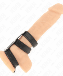 KINK – TRIPLE LEATHER PENIS RING WITH PRESSURE CLOSURE