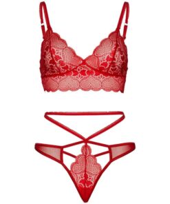 Completo due pezzi composto da reggiseno in pizzo e perizoma intagliato abbinato prodotto dal prestigioso marchio di lingerie Leg Avenue.