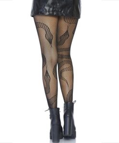 With a stylized snake design along the tights, these garments allow you to express your individuality in a bold and elegant way. The combination of the net texture with the snake patterns creates a striking visual effect that adds a touch of intrigue to your outfit.