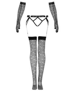 - Gloves: Fishnet gloves complete the ensemble, adding a final touch of sophistication and mystery. Their elegant and provocative design makes them the perfect complement to this set.
