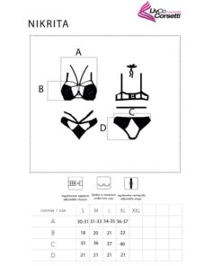 The product is available in various sizes from S to XL. Both the bra and the panties have adjustable straps and back for a perfect fit. The Nikrita lingerie set is a proposal for women who value classics, but also like daring styles!