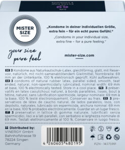 In addition to responsibility and care during sex, men with a heavy penis naturally also need the right condom, which can be difficult to find – until now. Fortunately, MISTER SIZE 69 is like a personal tailor-made suit. It fits perfectly to your best part like a second skin and allows you to experience moments of intensity and pleasure. No annoying side effects, just pure sensation.