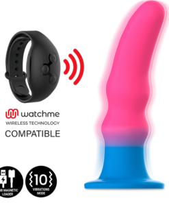 MYTHOLOGY consists of a range of dildos, all of them made of high-end silicone, available in two versions (with vibration and without vibration) and different sizes (S, M, L). The version with vibration, rechargeable, compatible with Watchme technology.