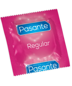 I preservativi Pasante Regular hanno una forma leggermente affusolata per una sensazione naturale. Morbido, di colore naturale e con la punta del capezzolo.