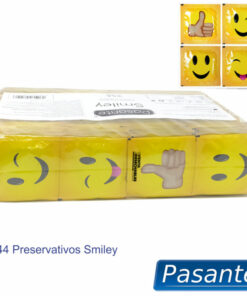 Smiley condom from the Pasante brand offer simplicity in form: comfort and sensation. Contains 4 different sheet designs, approximately 36 pieces each. Condoms with 4 fun Smiley-type faces, ideal for handing out at parties or bachelor or bachelorette parties.