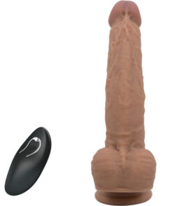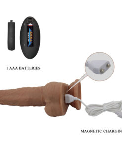 A thrusting ? vibrating vibrator in a realistic penis shape with a strong suction cup that sticks to any smooth surface. The suction cup makes hands-free fun possible. The 3 vibration and thrusting modes can be controlled separately via the remote control or by a partner. The thrusting and vibrating pleasure-giver is covered in soft silicone which feels great against the skin. The realistic vibrator is excitingly firm and hard without losing flexibility thanks to this material. The silky soft silicone material looks like real skin and also feels as velvety soft as skin.It can be recharged with the magnetic charging port at the end of the toy