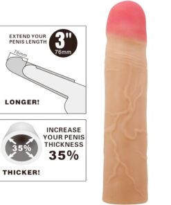 Increase your penis size with the Pleasure Penis Extender. Made from ultra-realistic material for ultra-realistic pleasure, this sleeve gives you an extra 3 inches of length, 35% circumference.