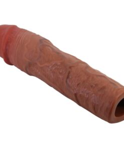 Increase the size of your penis with pleasure penis sleeve. Made of ultra realistic material for lifelike pleasure. The external surface is textured with lifelike veins and features a bulbous head to ensure your lover experiences natural feeling sensations. A smooth internal canal hugs your erection for maximum contact and stimulation.