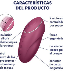 What does this device include? This beautiful Satisfyer lay-on vibrator offers two functions to guarantee unforgettable moments. The SatisfyerTap Climax 1is a lay-on vibrator that gently vibrates and taps the clitoris to enjoy a new type of pleasure. Its made of body-safe silicone and ergonomically shaped so its super comfortable and soft in the hand and on hot spots.