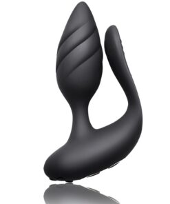 Chiudi gli occhi mentre il silicone sensoriale al tatto vellutato e il collo sottile del solido plug sagomato si incastrano vicino al corpo mentre l’asta flessibile scivola all’interno stimolando la tua vagina e il suo pene con ogni vibrazione profonda e spinta ritmica