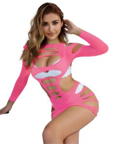 SUBBLIME – 952273 LONG SLEEVE ELASTIC FISHNET DRESS PINK ONE SIZE
