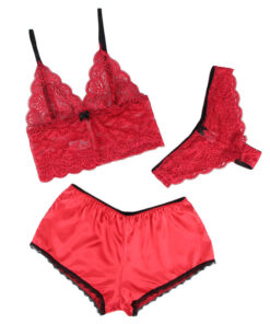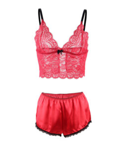 SUBBLIME – 953904 SILK AND LACE NIGHTGOWN + PANTIES RED L/XL