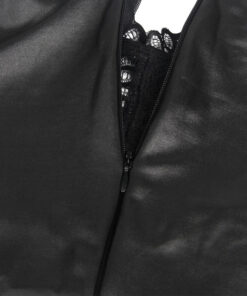 - Sophisticated Design: This lingerie dress combines black lace with leather details, creating a visually striking contrast that exudes sensuality and sophistication.