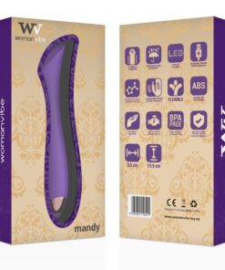Womanvibe lancia Mandy, un vibratore a doppio motore che offre una stimolazione intensa, in modo elegante e piacevole. Mandy è perfetta per una masturbazione che ti eleva al massimo piacere. Mandy incorpora silicone privo di falati sicuro al 100% per la tua pelle e dettagli in Abs, completamente flessibile si adatta al tuo corpo.