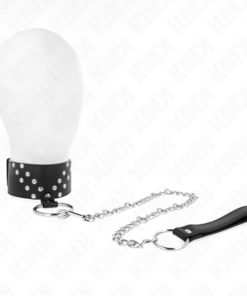 KINK – NECKLACE WITH LEASH 116 CM WITH SILVER STUDS MODEL 4 BLACK ADJUSTABLE 40-48 CM X 6 CM