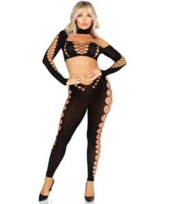 LEG AVENUE – CROP TOP AND FISHNET LEGGING WITH RHINESTONES BLACK