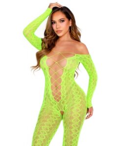 LEG AVENUE – CROTCHLESS BODYSTOCKING EXOTIC SNAKE LACE NEON GREEN